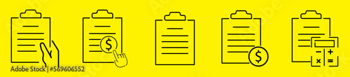 Clipboard, checklist, report, survey or agreement، outline icons set isolated، vector illustration.