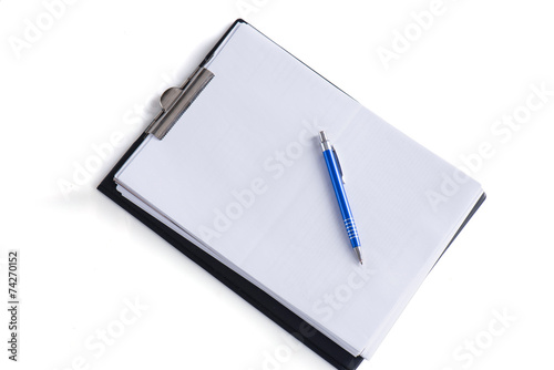 clipboard with paper and a pen