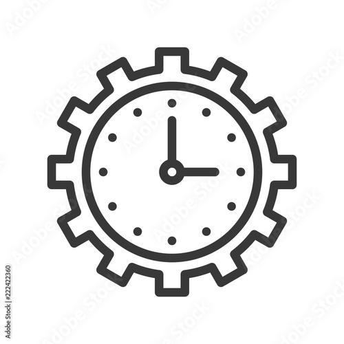 clock and gear, time management or maintain icon, pixel perfect, outline design editable stroke