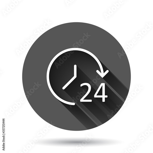 Clock icon in flat style. Watch vector illustration on black round background with long shadow effect. Timer circle button business concept.