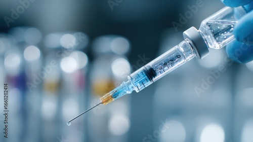 Close medium shot capturing the precise injection of a therapeutic superagonist under the skin with blurred clinical instruments in the background.