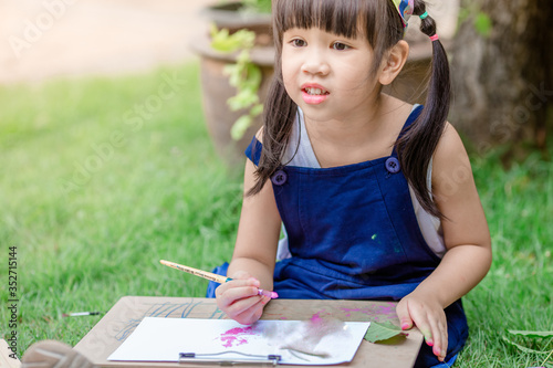 Close up background view Of cute girls drawing pictures for learning, artistic marketing concepts or studying during the semester outside the classroom