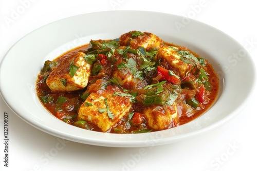 Close up capture of indian paneer chili in a bowl vibrant delicious and visually appealing appetizing dish presentation