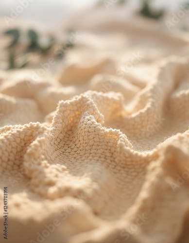 Close Up Cream-colored Woven Fabric Texture with Soft Shadows