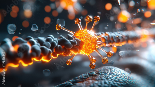 close up depiction of nanobots enhancing delivery systems, showcasing intricate details and vibrant colors. image highlights fusion of technology and biology in dynamic environment