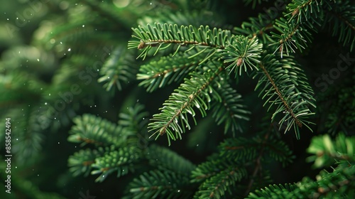 Close up Holiday Bio Concept Design with Coniferous Fir Tree Branches