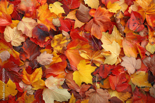 close up horizontal colorful dead leaves pattern in a context of autumn foliage