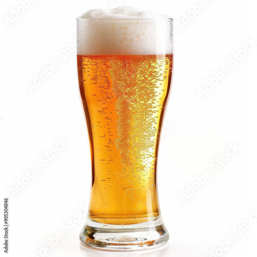 close up isolated image of a pint of beer on a white neutral background, copy space