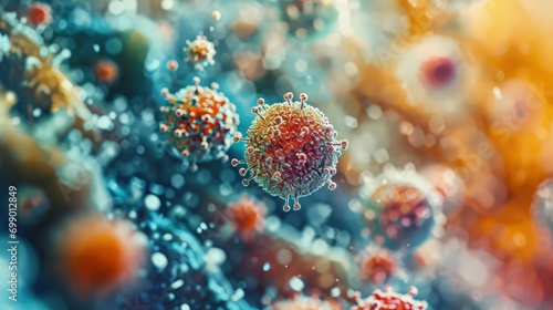 Close up macro details of microbes molecules virus bacteria, dna and rna