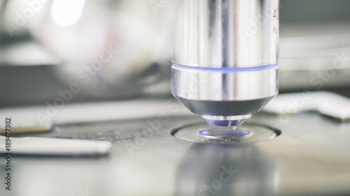 Close up objective lens microscope.
