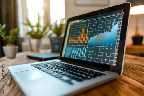Close up of a 3D graph growing upwards on laptop screen