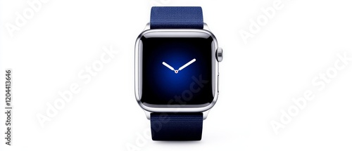 Close up of a black and silver smartwatch with a simple digital interface on a white background, showcasing sleek wearable technology and minimalist design