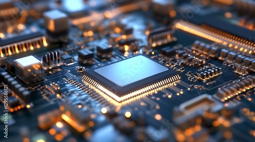 Close Up of a Circuit Board with Bright LED Lights and Microchips : Generative AI