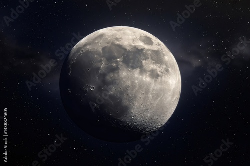 Close up of a crescent moon with earthshine, craters and stars in the background creating a stunning cosmic scene