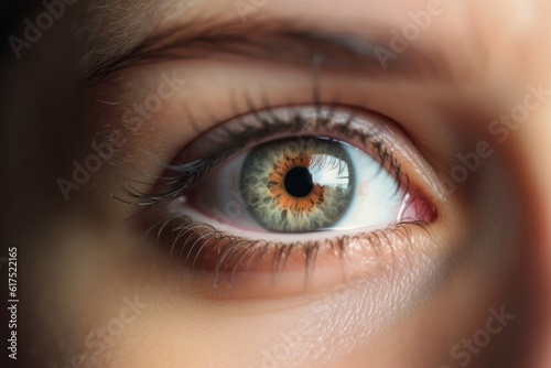 close up of a female eye, Digital Intrigue: A Captivating Close-Up Photograph of a White Hacking Symbol in Front of a Human Eye, Illuminating the Intersection of Technology and Identity