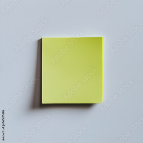 Close up of a green sticky note pad placed at the center of a plain white background with minimal and clean composition for a simple professional product shot or brand mockup