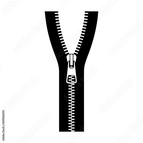 Close up of a metal zipper with teeth open partially showing the slider mechanism vector