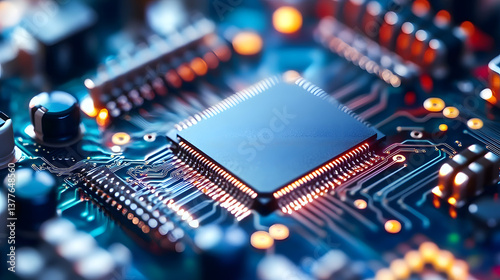 Close Up of a Modern Microprocessor on a Printed Circuit Board with Advanced Features