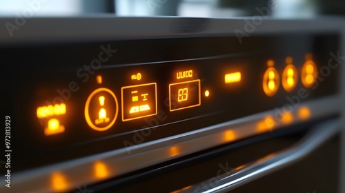 Close up of a Modern Oven Control Panel with glowing orange lights