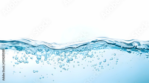 Close Up Of A Refreshing Blue Water Wave With Bubbles On A Clean White Backdrop