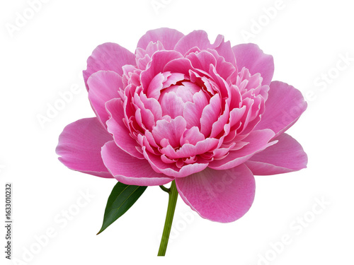 Close up of a vibrant pink peony flower with delicate ruffled petals isolated on transparent background