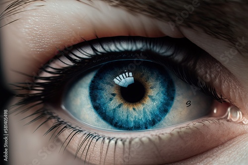 Close up of a woman's blue eye. Generative AI