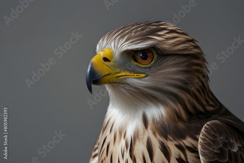Close up of angry hawk isolated on gray.generative.ai