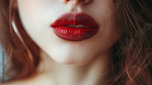 Close up of beautiful woman's lips with red lipstick. Beauty, fashion.