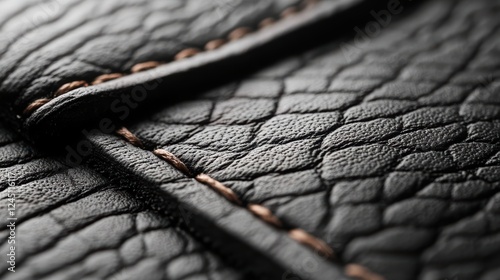 Close up of black leather texture with detailed grain pattern and soft appearance