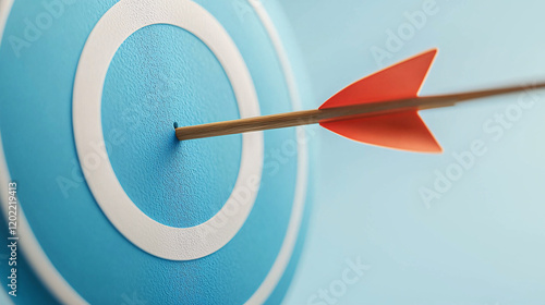 Close up of blue target with arrow perfectly hitting center, symbolizing precision and focus. This evokes sense of achievement and determination