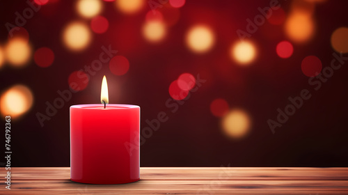 Close up of burning candle with blurred background and copy space for text