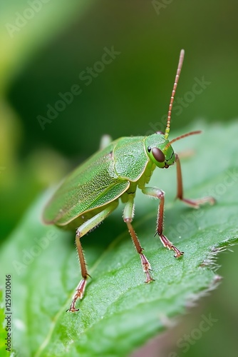 Close Up of Green Grasshopper on Leaf : Generative AI