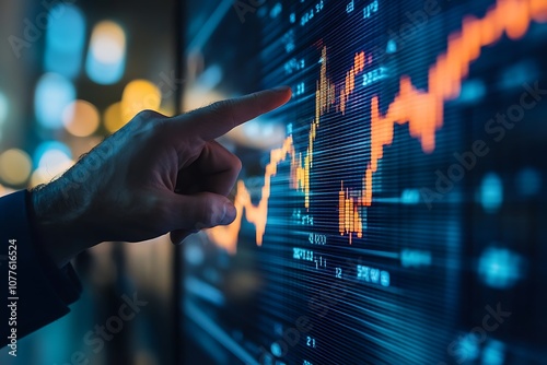 Close up of Hand Interacting with Stock Market Data on a Computer Screen