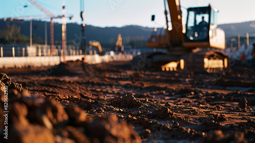 Close up of heavy machinery and equipment working on a construction site