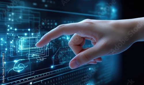 Close up of human hand touching icon on virtual screen