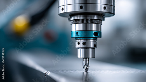 close up of modern factory machinery with gleaming metal drill bit, showcasing precision engineering and industrial technology in manufacturing setting