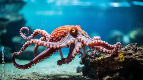 Close up of octopus underwater, showcasing diverse sea creatures and the rich marine ecosystem