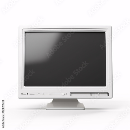 Close up of old computer monitor isolated on white background. Retro wave old personal computer PC. Nostalgia concept.