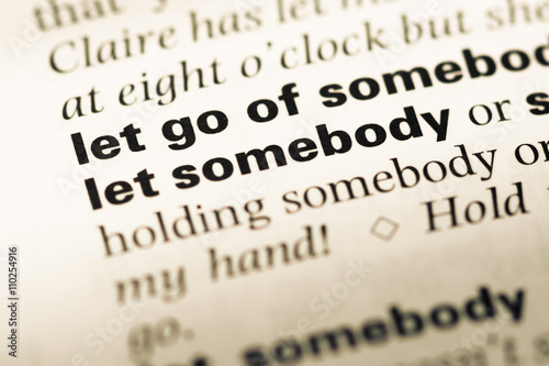 Close up of old English dictionary page with word let go of