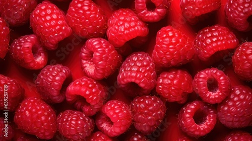 close up of raspberries on a red background