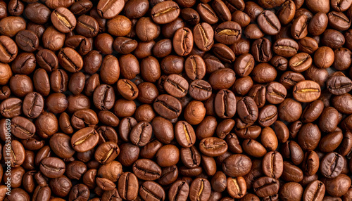 Close Up Of Roasted Brown Coffee Beans Texture Background High Angle View