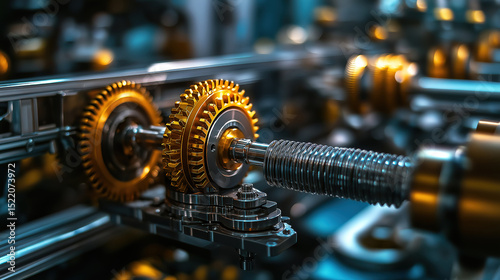 Close up of rotating gears in factory showcasing precision engineering and modern machinery