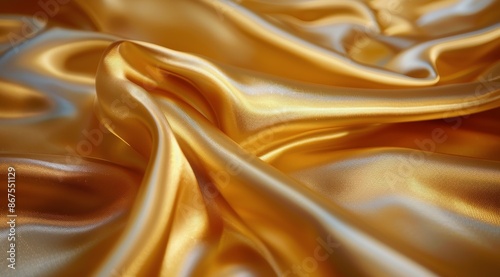 Close Up of Smooth Gold Satin Fabric Draped and Wrinkled