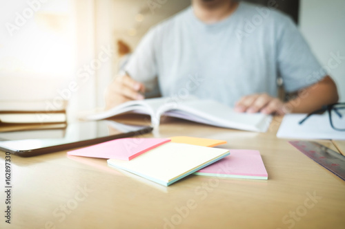 Close up of studying student hands writing in book during lecture education students college of university, Reading, Learning and Exam. Education concept