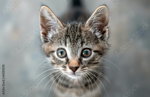 Close Up of Tabby Kitten With Green Eyes Looking at Camera