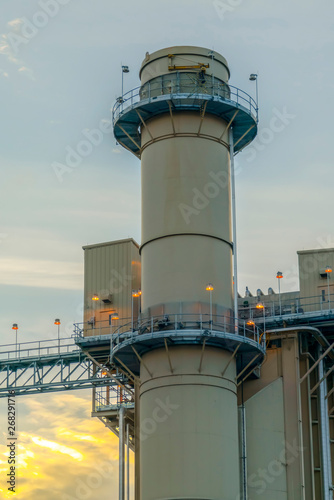 Close up of the huge tower of a Power Plant in Utah Valley at sunset