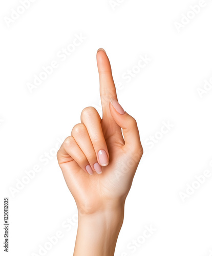 close up of woman hand with fingers forming pointing gesture, isolated on transparency background