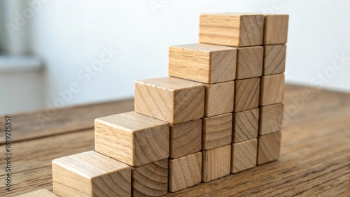 Close Up of Wooden Blocks Stacked as Bar Chart Graph for Business Growth Concept
