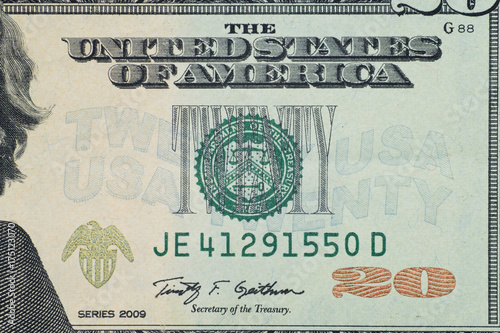 Close up on US dollar banknotes. U.S. Federal reserve system on US Dollar banknotes. Shooting by 1:1 Macro lense.