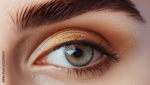 Close up photo of a hazel female eye with simple make up. Only eyeliner and mascara is applied. Her eyebrow is visible